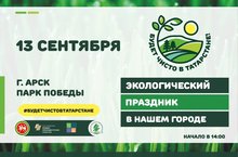 09.09.2020 Друзья, ждём всех всех от мала до велика 13 сентября в Парке Победы принять участие в экологическом празднике "Будет чисто в Татарстане!". От 14.00 до 18.00 для вас будут работать игровые площадки, будут ждать интерактивные развлекательные игры, мастер-классы, праздничный концерт. Ну и конечно же, не забывайте о самом главном, здесь будет работать пункт приёма второсырья. Приносите с собою макулатуру, пластик, ненужные предметы быта (игрушки, сувениры) в хорошем состоянии. Вместе сделаем наш мир чище!
