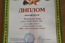 За активное участие в конкурсе рисунков "Великая Победа" награжден Зиннатуллин Р., ученик 4 класса.