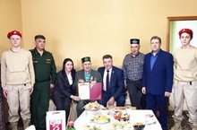 Ко дню защитника Отечества 21.02.2020 21 февраля юнармейцы нашей школы присутствовали на награждении ветерана Великой Отечественной войны Галиева Масхуда Галиевича юбилейной медалью "75 лет Победы в Великой Отечественной войне 1941-1945гг". На мероприятии присутствовал Глава Арского муниципального района Нуриев И.Г., военный комиссар Арского и Атнинского районов Бурганов А.А., начальник Отдела социальной защиты по Арскому району Галяветдинова Л.Н., депутат совета МО "город Арск" Хакимов И.У.