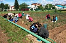 Работа на пришкольном участке 23.06.2017 На пришкольном участке идет прополка овощных культур. По графику работает 6а класс с классным руководителем Набиуллиной Ф.Х.