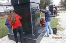 В рамках акции "Чистый город" обучающиеся 8б класса с классным руководителем Гиниятуллиной Г.И. привели в порядок аллею писателей в г. Арск.