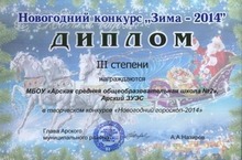 На открытии районной елки 26 декабря 2013 года школы и предприятия г. Арск участвовали в творческом конкурсе "Новогодний гороскоп". Команда нашей школы удостоена Диплома III степени.