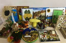 Безнең мәктәптә табигый материалдан эшләнгән эшләнмәләр күргәзмәсе узды. Бу шедеврларны ясау өчен Көз бүләкләре - яшелчә, җиләк-җимеш, коры чәчәкләр, күркәләр кулланганнар... Һәр эштә һәр баланың иҗади индивидуальлеге һәм фантазиясе күзәтелә. -