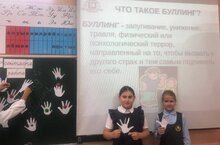 4 нче сыйныфларда « Буллинг»темасына класс сәгате үтте. Буллинг-эзәрлекләү, куркыту... бу әңгәмә бер-берсенә карата яхшы мөнәсәбәтләр формалаштыра, яшьтәшләр белән шәхесара мөнәсәбәтләр күнекмәләрен үстерә, толерантлыкны арттыра, агрессияне һәм дошманлык реакциясен киметә. Дәрестә уен методы кулланылды, бу исә укучыларның эшчәнлеккә кызыксынуын саклап калуга ярдәм итте: "мин кем?», « Рәсем». Уңыш ситуацияләре тудырылды. Йомгаклауда « ничек буллинг корбаны булмаска»дигән белешмәлек тәкъдим ителде.