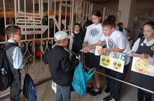 Бүген, 19 сентябрьдә юл хәрәкәте иминлеге атналыгы һәм смайликның туган көне кысаларында безнең мәктәптә тәрбия буенча директор киңәшчесе 8 "А" класслы "ЅаМоѕтоятельные дети" отряды белән берлектә "Елмаю бүләк ит" акциясе үткәрде. Укучыларны каршыладылар һәм аларга смайлик рәвешендә елмаюлар бүләк иттеләр, ә җавап итеп балалар үзләренең елмаюларын яктылык кайтаручы элементларда смайлик рәвешендә күрсәттеләр. Көнегезне елмаеп башлагыз, һәм барысы да килеп чыгачак!