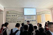 Право внести флаг было предоставлено победителям медиафорума - ученице 11 класса Мусиной З. и Шакировой С. ученица 9Б класса