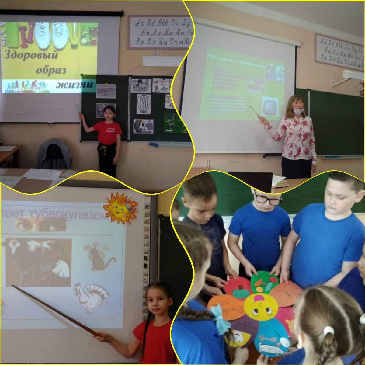 Ежегодно 7 апреля отмечается Всемирный День здоровья. В школе прошли Уроки здоровья: “Здоровый ребенок – здоровое питаие”, “Здоровый образ жизни”, “Вредные привычки”, “Туберкулёз и его последствия”.Ел саен 7 апрельдә Бөтендөнья сәламәтлек көне билгеләп үтелә. Мәктәптә "Сәламәт бала – сәламәт туклану", "Сәламәт яшәү рәвеше", "Зарарлы гадәтләр", "Туберкулез һәм аның нәтиҗәләре"дигән сәламәтлек дәресләре узды.