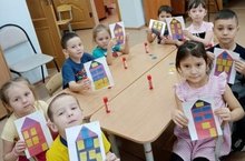 Учить детей передавать в аппликации образ городской улицы.Кисеп ябыштыру шөгелендә күпкатлы шэhәр йортын ясау.