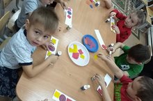 На занятии по аппликации на тему "Шарики и кубики" малыши второй младшей группы знакомились с новой геометрической фигурой – квадратом. Старались сравнивать квадрат и круг. Пытались называть эти две геометрические фигуры квадрат и круг. Затем дети приклеивали фигуры чередуя квадрат, круг под руководством воспитателя.