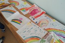 Ребята второй младшей группы сегодня на время стали художниками.Они рисовали на тему "Дружная радуга ".
