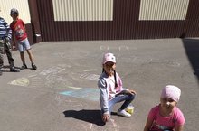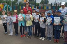 С детишками детского сада провели развлечение "Здравствуй,лето!".Беседовали,разгадывали загадки,рисовали лето на асфальте.