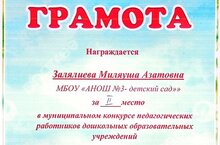 Сегодня на базе МБДОУ "Арский детский сад №5" прошел районный конкурс "Лучший мастер-класс педагога ДОУ". На этом конкурсе участвовала Залялиева Миляуша Азатовна -воспитатель старшей группы. Миляуша Азатовна награждена Почетной грамотой за 2 место. Мы от всей души поздравляем коллегу и желаем творческих успехов!