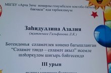 Сәламәт тәндә - сәламәт акыл 07.04.2017 Бүген Арча шәһәренең үзәк стадионында Бөтендөнья сәламәтлек көненә багышланган шәһәркүләм шигырь бәйгесе узды.Безнең балалар бакчасыннан мәктәпкә әзерлек төркемендә тәрбияләнүче Заһидуллина Азалия катнашты һәм 3 нче урын яулады.Котлыйбыз!