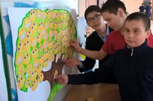 Мәктәптә волонтерлар кәрү ходына "Кәеф агачы " ясадылар, балалар шуңа кәеф смайллары ябыштырдылар һәм плакатлар белән фотога төштеләр.