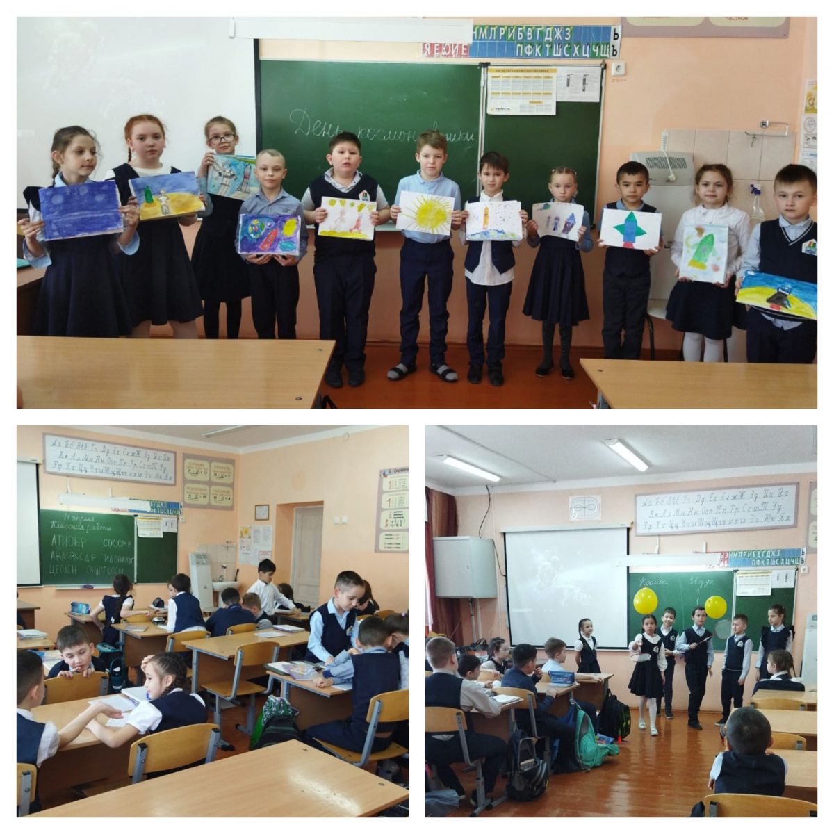 Сегодня во всех классах прошли классные часы, посвязенные Дню Космонавтики, где дети и играли, и видео просмотрели, и рисовали. -