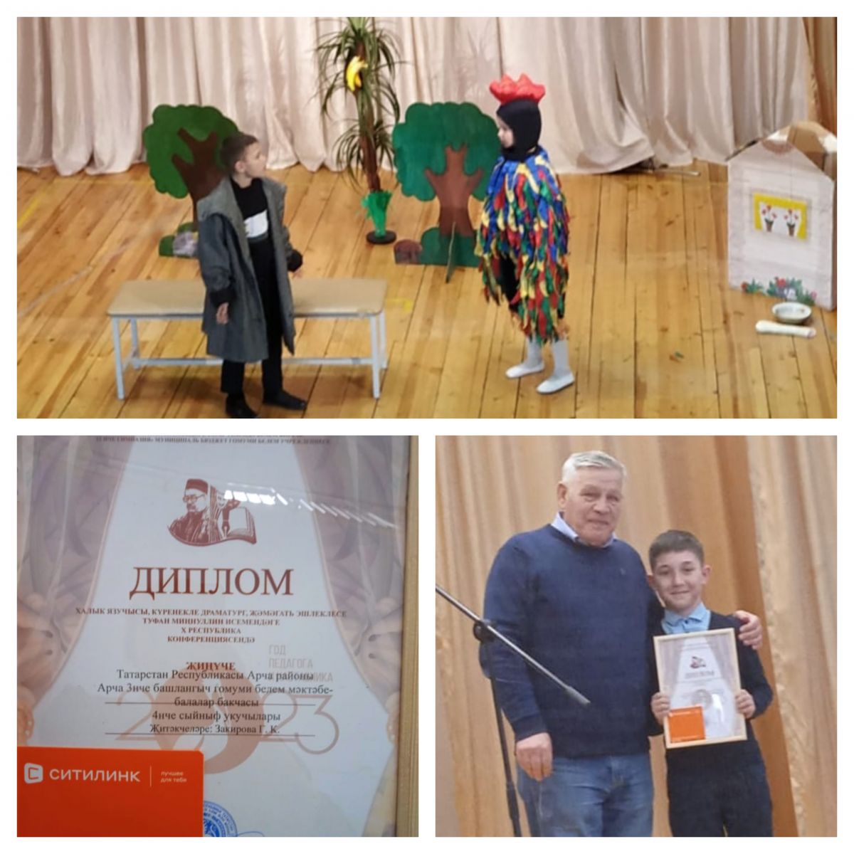Бүген "Күңелле сәхнә " театр түгәрәгенә йөрүче укучылар Закирова Г. К. җитәкчелегендә Казан шәһәренең Аитов исемендәге 12 нче гимназиясендә Т. Миңнуллин иҗатына багышланган фәнни-гамәли конференциясендә уңышлы чыгыш ясап Җиңүче исеменә лаек булдылар. Котлыйбыз һәм алга таба да иҗади уңышлар теләп калабыз! -
