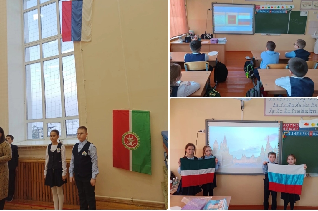 ???? Уку атналыгы традиция буенча флагларны күтәрү һәм Россия Федерациясе һәм Татарстан Республикасы гимнын башкару белән башланып китте. Шулай ук барлык классларда «Россия символлары» темасы буенча «Мөһим сөйләшү» дәресләре узды. Дәреснең максаты-укучыларның илнең һәм республиканың рәсми символлары (герб, гимн, флаг) тарихы, аның суверенитетын, үткән һәм хәзерге бердәмлеген чагылдыра торган күзаллауларын киңәйтү.
