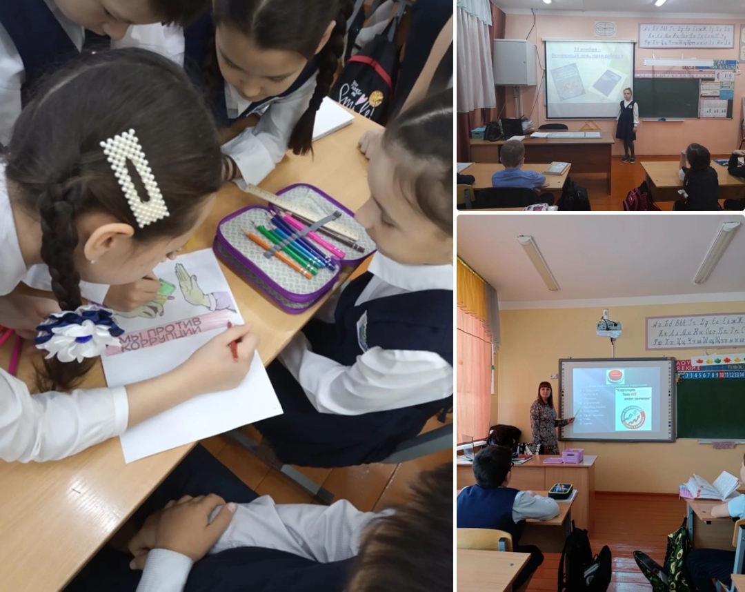 Так же были проведены воспитательные беседы «Вместе мы против коррупции», целью которого является формирование у учащихся антикоррупционного мировоззрения и воспитания негативного отношения к коррупции.Бөтендөнья бала көне ел саен 20 ноябрьдә билгеләп үтелә. 1954 елда БМО Генераль Ассамблеясе барлык илләргә бу датаны дөньякүләм тугандашлык һәм балаларны үзара аңлашу көне буларак, бөтен дөньяда балалар иминлеген тәэмин итүгә юнәлдерелгән чараларны гамәлгә кертергә тәкъдим итте. Бу кысаларында сыйныфларда « Мин һәм минем хокукларым»темаларына әңгәмәләр үткәрелде. Балалар мәктәптә һәм көндәлек тормышта балаларның хокуклары һәм бурычлары белән таныштылар, төрле тормыш хәлләре турында сөйләштеләр. Шулай ук «Без коррупциягә каршы бергә» дигән тәрбияви әңгәмәләр үткәрелде, аның максаты укучыларда коррупциягә каршы дөньяви карашны формалаштыру һәм коррупциягә тискәре караш тәрбияләү.
