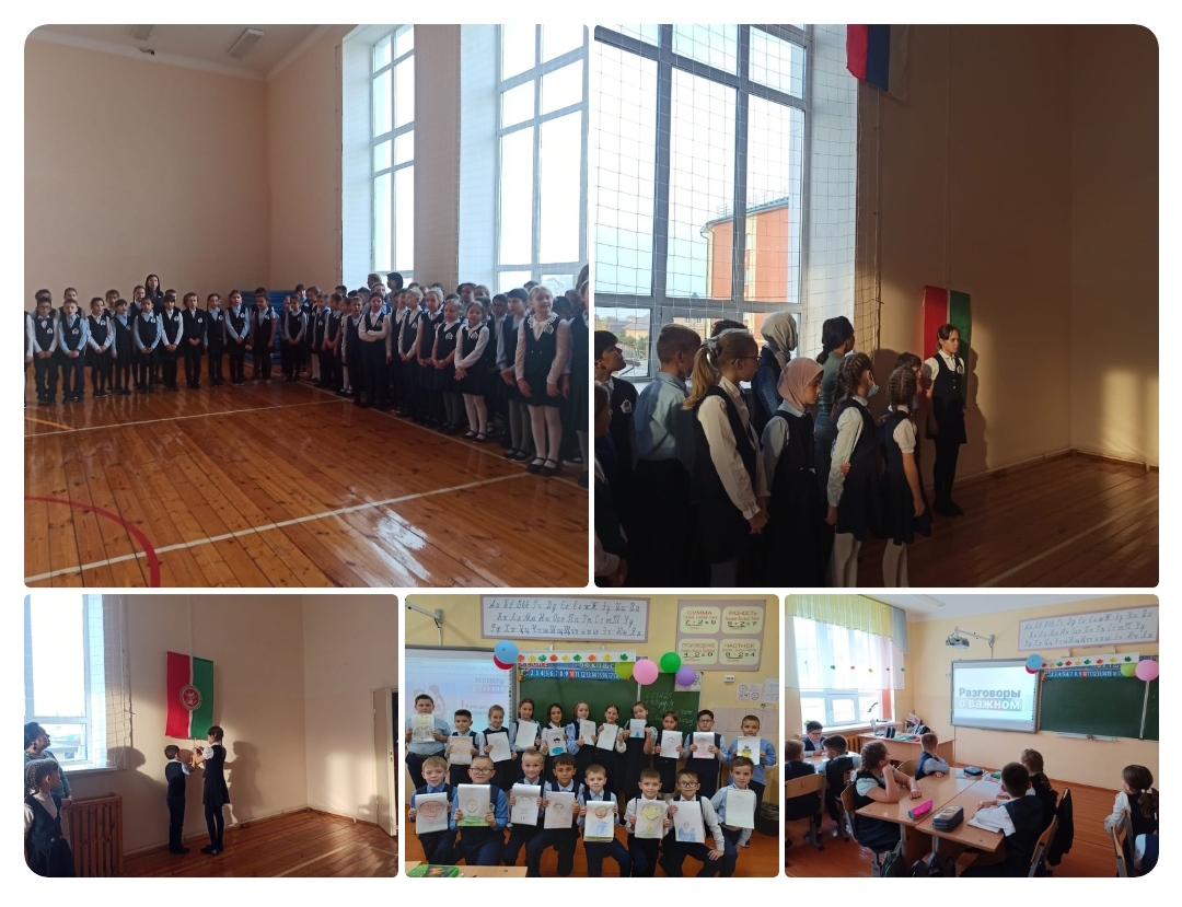 Еженедельно по понедельникам в нашей школе проходит линейка, посвящённая поднятию флагов Российской Федерации и Республики Татарстан и исполнению гимнов .