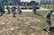 «Со спортом дружить - здоровым быть» 15.08.2022 Дети старшей группы сыграли в эстафету, цель которой - способствовать сплочению ребят, научить их играть в команде, соревноваться. Перед игрой ознакомились с основными правилами, например, такие как: необходимо у линии старта передать эстафету следующему касанием руки; играем честно и сообща; если выиграл – радуйся, если проиграл – не расстраивайся. Олылар торкеме балалары очен эстафета оештырылды. Максаты: балаларның физик активлыкларын үстерү; күмәк күнегүләр эшләү кагыйдәләрен ныгыту.