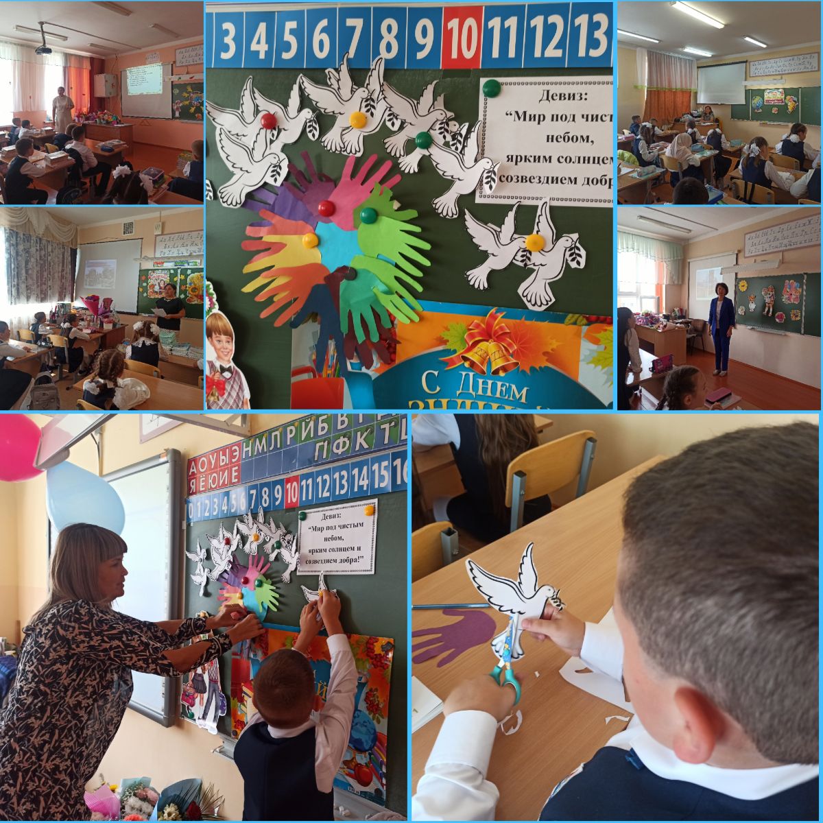 Вот и закончились летние каникулы, прозвенел школьный звонок. День Знаний – праздник особый, хотя каждый год он повторяется вновь и вновь. Cегодняшние классные часы очень важен, так как тема его «Урок мира и добра».Учить детей жить по законам добра и справедливости, соотносить свои интересы с интересами своих товарищей.
