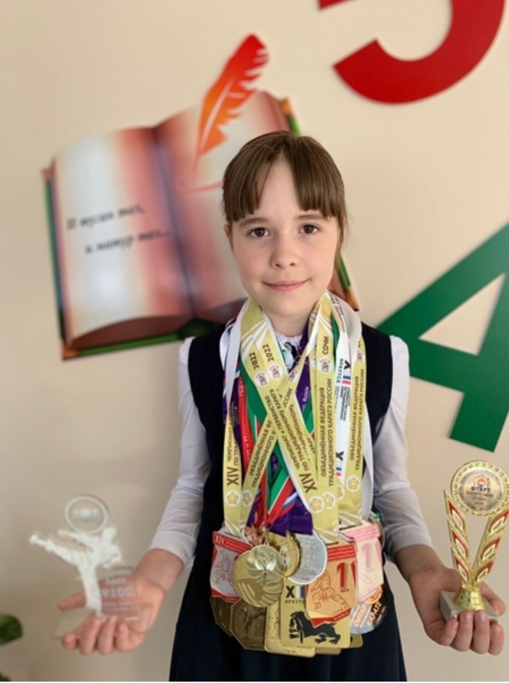 Сегодня я хочу рассказать о своей ученице Гераскиной Софии. София ученица 3 «В» класса МБОУ «АНОШ №3-детский сад». Отличница, победительница творческих конкурсов, София - известная личность в школе и в районе . София начала заниматься Традиционным карате, когда ей было 5 лет. Через полтора года усердных тренировок, в марте 2019 года, на XI Чемпионате Объединённой Федерации Традиционного Карате России (ОФТКР), София впервые стала абсолютной чемпионкой России. В октябре того же года прошёл XXXIV Чемпионат Европы, в котором приняли участие спортсмены из таких стран как Великобритания, Германия, ОАЭ. И здесь София завоевала золотую, серебряную и бронзовую медали. В 2019 году состоялся VII Кубок ОФТРК, на котором девочка вновь завоевала все золотые медали. Дважды становилась Спортсменом года (2019, 2020гг.). В 2021 году на XIII Чемпионате России по традиционному карате, София снова повторила свой успех и стала абсолютной чемпионкой России. И вот недавно, 23-24 апреля 2022 года, прошёл очередной чемпионат ОФТКР, где София завоевала две золотые и две серебряные медали.