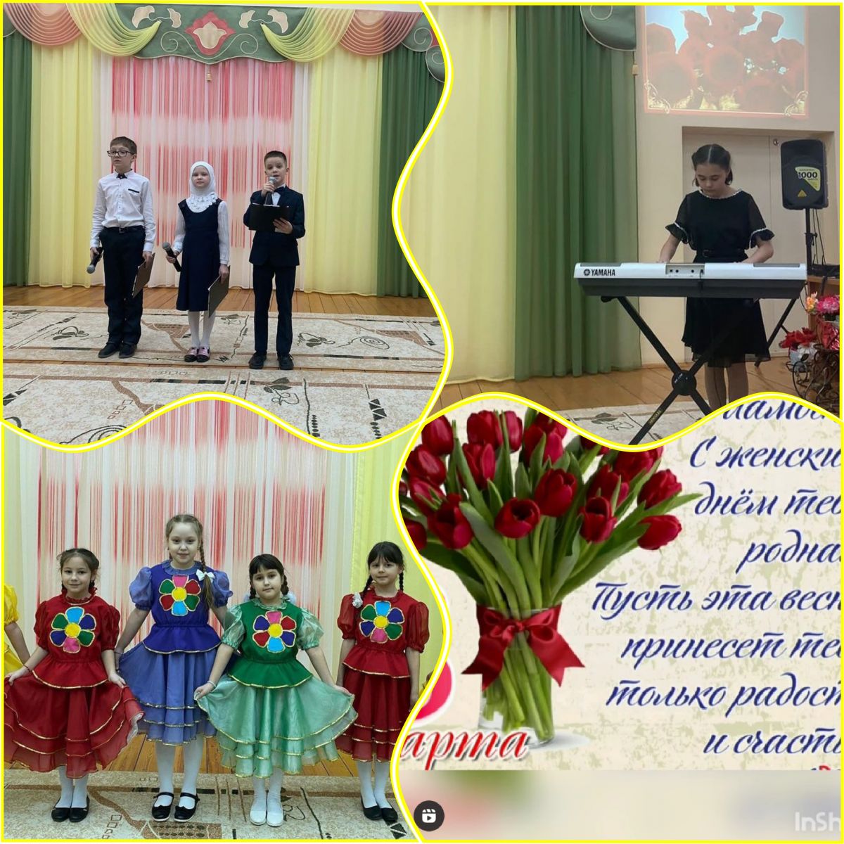 Бүген мәктәптәбебездә 8 Март-Халыкара хатын-кызлар көненә багышланган бәйрәм концерты булып узды.бу көнне безнең мәктәп язгы кәеф атмосферасы белән тулы иде.Сегодня в школе прошел праздничный концерт конөерт, посвященный Международному Женскому дню 8 марта.в этот день наша школа бла наполнена атмосферой весеннего настроения.