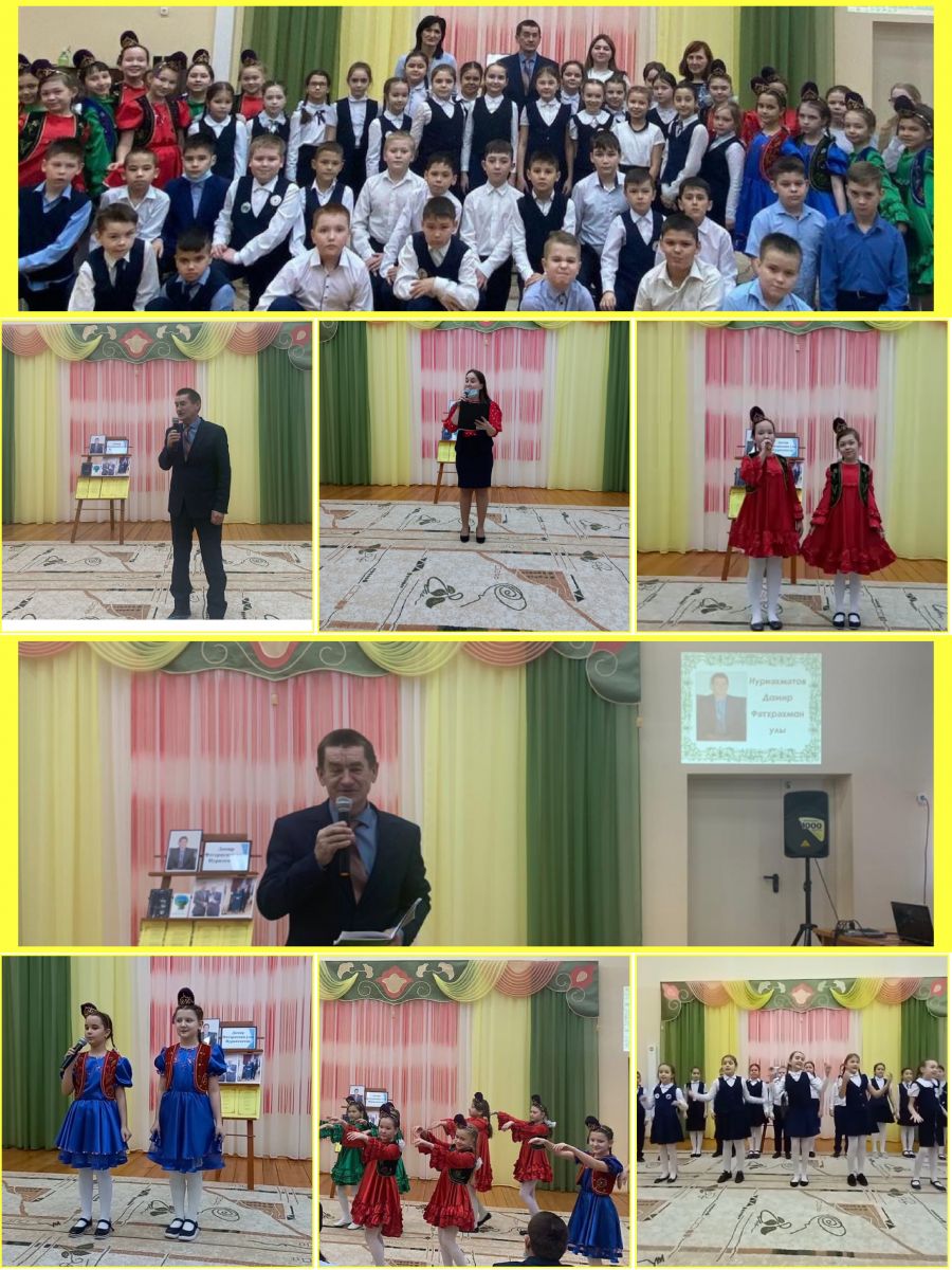 Бүген безнең мәктәбебездә Татарстан Республикасының балалар шагыйре, "Каурый каләм" әдәби иҗат берләшмәсе әгъзасы - Нуриәхмәтов Дамир Фәтхрахман улы белән очрашу булып узды. Укучыларыбыз шагыйребезнең тормыш һәм иҗаты белән тагын да якынрак танышып киттеләр, шигырьләрен сөйләделәр. Кичә җыр һәм биюләр белән уралып барды. Киләчәктә дә шундый җылы очрашулар насыйп булыр дип ышанып калабыз. -