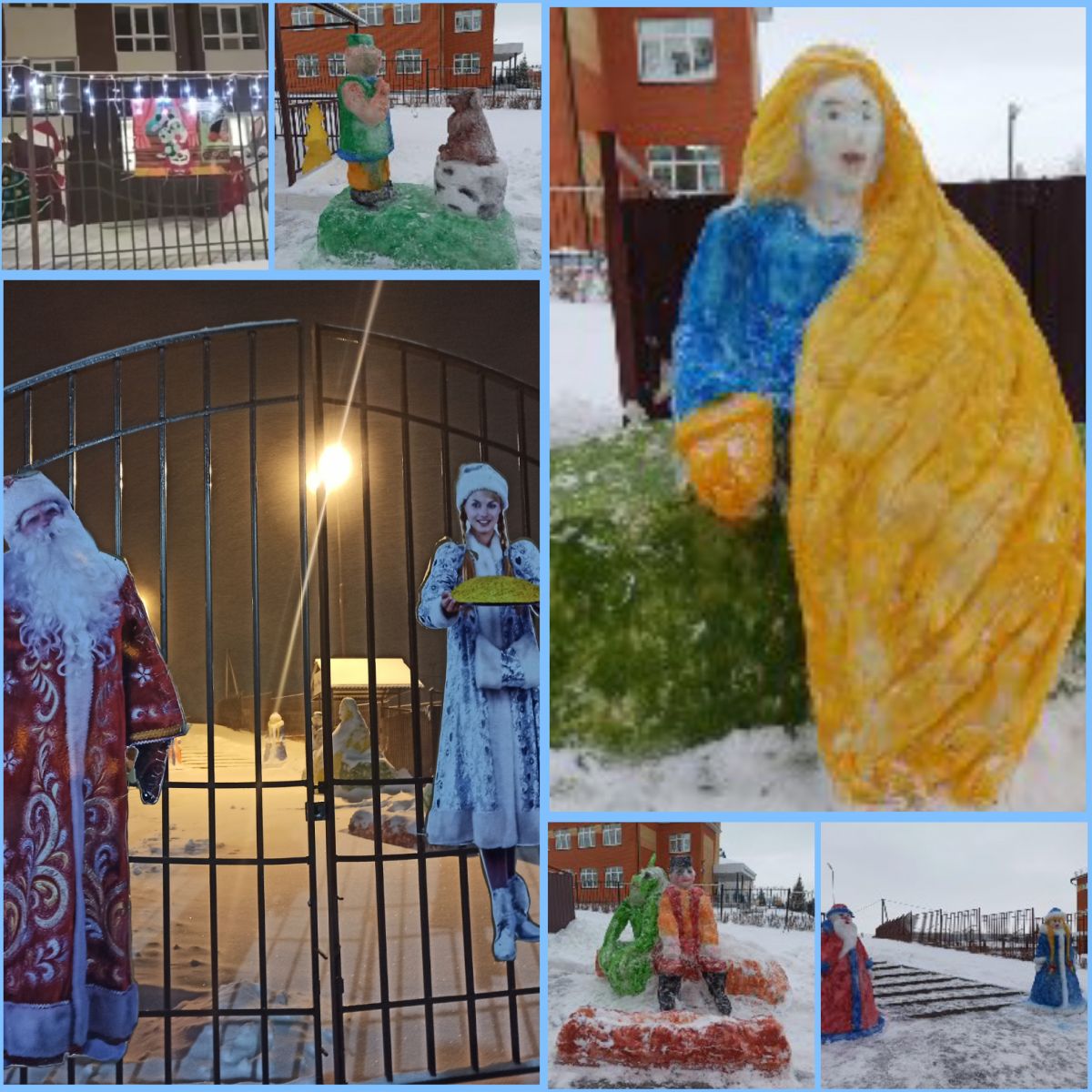 Зимой наш школьный двор оживает и преображается. На дворе появляются снежные фигуры, сказочные герои. Создание снежных фигур это особенный, волшебный процесс. В течение нескольких дней территория школы превратилась в сказочное, снежное царство. Выражаем огромную благодарность коллективу нашей школы и родителям за такую красоту! -