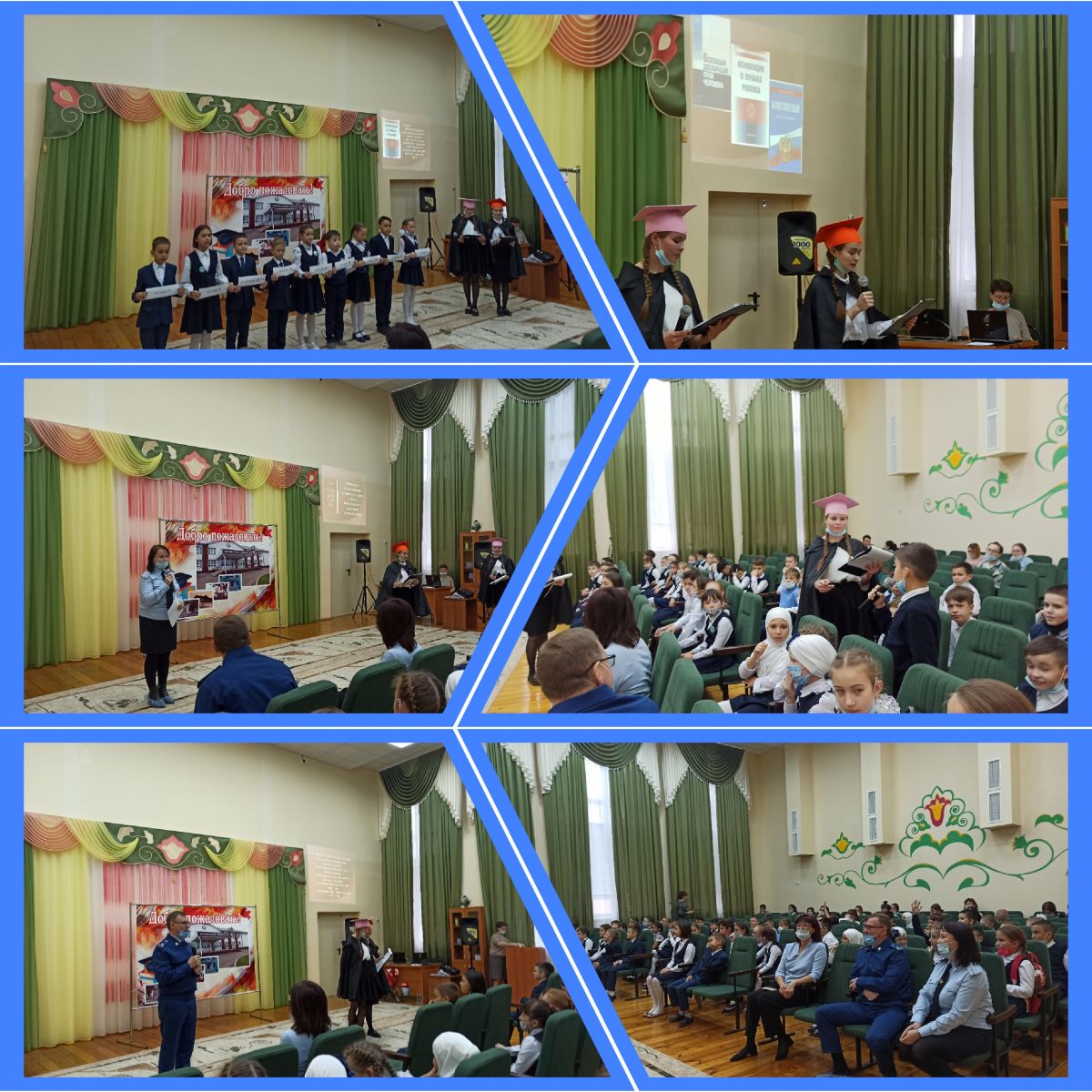 В рамах месячника правовых наний и профилактики правонарушений, в честь 300 летию прокурауры в 4 класссах прошел правовой открытый классный час "Наши права иобязанности" с участием инспектора по делам несовершеннолетних отдела МВД России по Арскому району капитан полиции Усмановой ЭС. и прокурора арского района РТ Шайхаттарова ФР.. В ходе классного часа ребята обобщили знаний, познакомились с содержанием нкоторых статей из всеобәей декларации прав человека, принимали активное участи в дискуссии, излагали собственное мнение анализировали разные ситуации. В заключении классного часа ребята получили памятки "Мои права".Хокукый белемнәр һәм хокук бозуларны профилактикалау айлыгы кысаларында, прокуратураның 300 еллыгы уңаеннан, 4 сыйныфта Россия Эчке эшләр министрлыгының Арча районы буенча бүлегенең балигъ булмаганнар белән эшләү буенча инспекторы полиция капитаны Усманова ЭС катнашында "безнең хокуклар һәм бурычлар" дигән темага Хокукый ачык сыйныф сәгате узды. ТР Арча районы прокуроры урынбасары Шәйхаттаров Ф. р.. Сыйныф сәгате барышында балалар белемнәрне гомумиләштерделәр, Кеше хокуклары декларациясенең кайбер маддәләренең эчтәлеге белән таныштылар, дискуссиядә актив катнаштылар, төрле ситуацияләрне анализладылар. Сыйныф сәгате ахырында балалар "Минем хокукларым"дигән белешмәлек алдылар.
