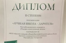 Республика күләмендә 2019-2020 нче уку елына игьлан ителгән «Китапка икенче тормыш бүләк ит» акциясенең «Иң яхшы бүләк ясаучы мәктәп» номинациясендә безнең "Арча 6 нчы номерлы урта мәктәбе" җиңүче исеменә лаек булды. Кукмара районы Манзарас урта мэктәбендә әлеге акциянең йомгаклау, тәбрикләү тантанасы үтте.