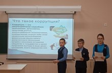 Сегодня в МБОУ "АСОШ 6" учитель английского языка Хайруллина М.Н. провела классный час. Учащиеся 5 Б класса подготовили доклад на тему: "Сказать коррупции нет!"