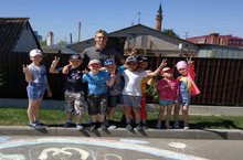 «День юного художника». День в лагере начался со сбора детей. Далее по программе была линейка и утренняя зарядка. А уже после завтрака дети приступили к главному занятию дня- рисованию на асфальте. Дети с большим интузиазмом подошли к делу и разрисовали асфальт разными красками. Все дети получили колоссальное удовольствие от рисования и получили много ярких эмоций.