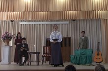 Накануне великого праздника Дня Победы учащиеся 7А класса выступили с литературно-музыкальной композицией "А завтра была война" (подготовила и провела Загидуллина Г.Р.). Юноши и девушки рассказали о том, как во время Великой Отечественной войны воевали и погибали на фронте женщины. В стихах, песнях и танцах они старались передать боль и ужасы того военного времени, призывали помнить о тех, кто отдал свою жизнь ради мира на Земле. Минутой молчания зрители почтили память о погибших на войне.