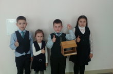 Кошлар җир йөзендә иң күп таралган тереклек ияләре. Җирдә барлыгы 100 миллиард чамасы кош яши. Татарстанда җәй көннәрендә 200ләп, кышын 40 тан артык төрен очратырга мөмкин. Кошлар һавада очарга җайлашкан. Алар корткыч бөҗәкләрне юк итәләр, табигатьне матурлыйлар, сайраулары белән кеше тормышын бизиләр, күңелгә рәхәтлек, рухи байлык өстиләр. Әйдәгез, без дә аларга мәрхәмәтле булыйк!Кошларны рәнҗетмик, аларга җимлекләр элик, табигатебезне саклыйк!Шушыны истә тотып 1нче Б классы укучылары узенчәлекле җимлекләр ясадылар.Җимлеккә килгән кошларны күзәтүе күңелле.Кошларга кышның салкын,җил-буранлы көннәренә бирешмәскә уз өлешебезне дә керттек!