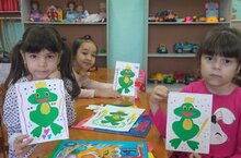 Катнаш төркем балалары белән кисеп-ябыштыру шөгылендә.