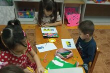 Максат: предметның образын төзү өчен кирәк өлешләрне кисү күнекмәләрен үстерү;турыпочмаклыкның почмагын түгәрәкләп кисү(кузов).Полосканы бер үк төсле турыпочмаклыкларга кисү(тәрәзә)күнекмәсен ныгыту;композиция төзү күнекмәсен үстерү.
