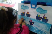 Зурлар һәм мәктәпкә әзерлек төркемнәре белән кисеп-ябыштыру шөгылендә "Рейдтагы корабльләр"темасына эш.. Балаларның күмәк композиция төзи белү күнекмәләрен ныгыту. Корабльнең төп форма һәм детальләрен тигез итеп кисүләренә һәм кәгазь битенә матур, пөхтә итеп ябыштыра белүләренә ирешү. Балаларда күмәк эштә катнашу теләге тәрбияләү. Балаларның күмәк композиция төзи белү күнекмәләрен ныгыту. Корабльның төп форма һәм детальләрен тигез итеп кисүләренә һәм кәгазь битенә матур, пөхтә итеп ябыштыра белүләренә ирешү.