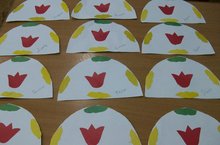 Максат:Калфак силуэты өстендә татар орнаменты элементларыннан сурәт урнаштырырга өйрәтү. Симметрияле формаларны кисү күнекмәләрен ныгыту.Чиста, пөхтә ябыштыру күнекмәләрен ныгыту,эшчәнлекләренә бәя бирү. -