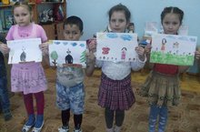 Максат : Рәсемдә танып әкиаят геройларын чагылдыра белергә өйрәтү эшен дәвам итү ;төрле буяу чаралары кулланып,чиста-пөхтә эш итә алуларына ирешү.