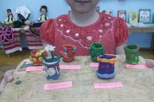 Максат : Балаларны әзер бирелгән вазага бармак башлары белән бизәкләр ясарга өйрәтүне дәвам итү.Бармаклар белән рәсем ясау күнекмәләрен үстерү.Төсләр буенча белемнәрен ныгыту.Рәсем ясауга кызыксыну һәм уңай мөнәсәбәт формалаштыру.