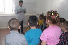 Бүген балалар белән медпунктта булдык.Фельдшер Рамилә апалары балаларга авыруларга каршы ничек көрәшү турында сөйләде. Балаларга сәламәтлекне саклауның кирәклеген төшендерде, сәламәтлекне саклауда су, һава, кояшның әһәмиятен; саулыкның матур гомер итү өчен мөһим шарт икәнлеген аңлатты. Балаларда үз сәламәтлекләренә карата җаваплы караш тәрбияләде.