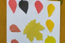 Программное содержание ::Закреплять умение работать ножницами. Упражнять в вырезывании простых предметов из бумаги ,сложенной вдвое (листья).Развивать умение красиво подбирать цвета(Оранжевый, красный, жёлтый ,темно-красный и др.)Развивать чувства цвета ,композиции.Учить оценивать свою работу.