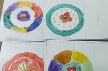 Максат : Балаларны гуашь ,краска белән таныштыруны дәвам итү.Төп төсләр буенча белгәннәрне ныгыту ,яңа төсләр белән таныштыру.Бирелгән түгәрәк формада бизәкләр ясарга өйрәтү.Краскалар белән чиста ,пөхтә буйый белергә өйрәтүне дәвам итү.Рәсем ясауга кызыксыну һәм уңай мөнәсәбәт формалаштыру.
