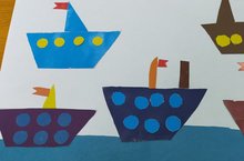 Цель :Закреплять умение детей создавать коллективную композицию.Упражнять в вырезывании и составлении изображений предмета (корабли),передавая основную форму и детали.Воспитывать желание принимать участие в общей работе ,добиваться хорошего качества своего изображения.