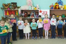 23 нче февраль - Ватанны саклаучылар көне уңаеннан ,без атна дәвамында балалар белән төрле чаралар уздырдык. Балалар әтиләренең ,бабайларының армия сафларында хезмәт иткәндә төшкән фотоларны алып килделәр һәм алар турында горурланып сөйләделәр.Кызлар ,бәйрәм белән малайларны котлап ,шигырьләр сөйләделәр,җырлар башкардылар.