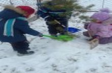 Мәйданчыгыбыздагы кечкенә агачларны кышка әзерлибез.Төпләренә карлар өябез.