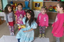 Максат: рәсемдә таныш әкият геройларын чагылдыра белергә өйрәтү эшен дәвам итү; төрле буяу чаралары кулланып, чиста-пөхтә эш итә алуларына ирешү