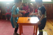 Балаларның игътибарлыкларын үстерү максатыннан "Кем тизрәк?" уены оештырыла.Бу уенны балалар бик яратып уйныйлар,шулай ук уен балаларда позитив кәеф тудыра.