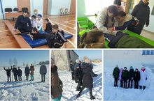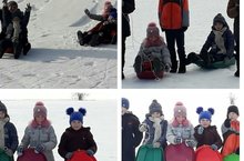 Учащиеся начальных классов 22 февраля провели "Богатырские забавы". Катались на санках, играли в снежки.